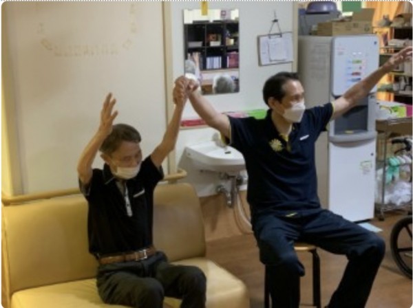 ご利用者様と一緒に職員もペアヨガ♪