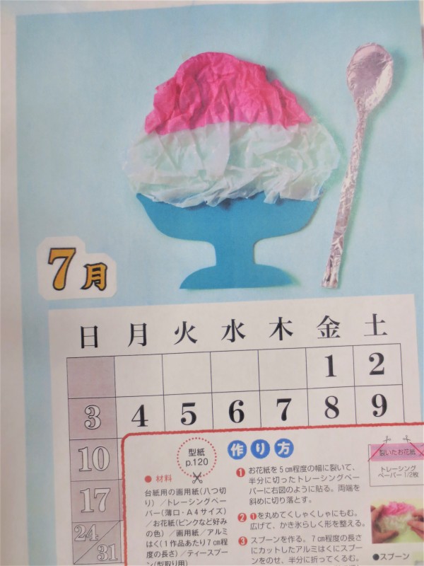 金魚のちょうちんは難しそうでした。カレンダーのかき氷は少し工夫しました。