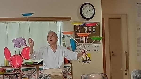 ハーモニカの演奏を聴いたり一緒に歌ったりしました。合間に巧妙なセリフを喋りながら皿廻しをされました・・・凄い!