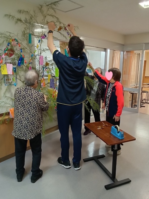 少し前から、短冊にそれぞれの願い事を書いていただき、笹にその短冊を飾り準備をしていました。
