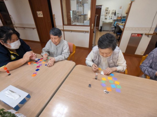 職員が持ってきてくれた笹の葉に飾り付けです(#^.^#)