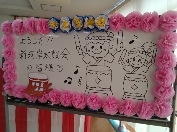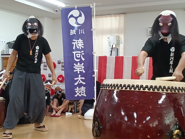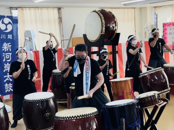 先日、6日(土)に「新河岸和太鼓会」の皆様が来て、素晴らしい和太鼓の演奏を披露してくれました。