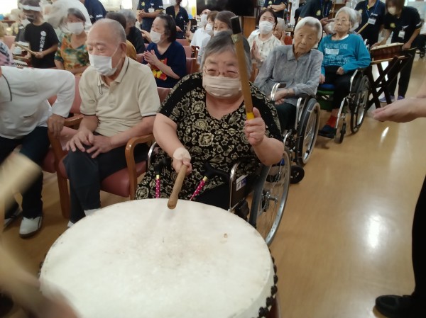 激しくかつ正確に、太鼓を叩く様子に、ご利用者様も感心しておりました。