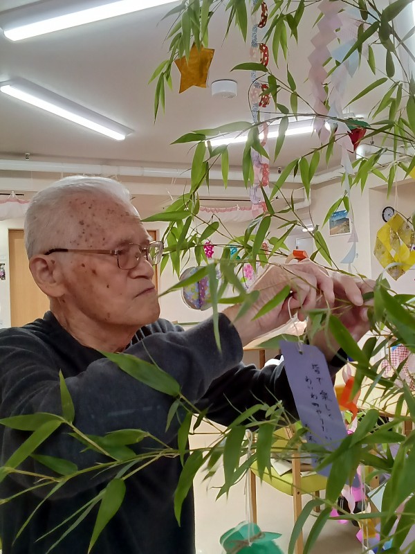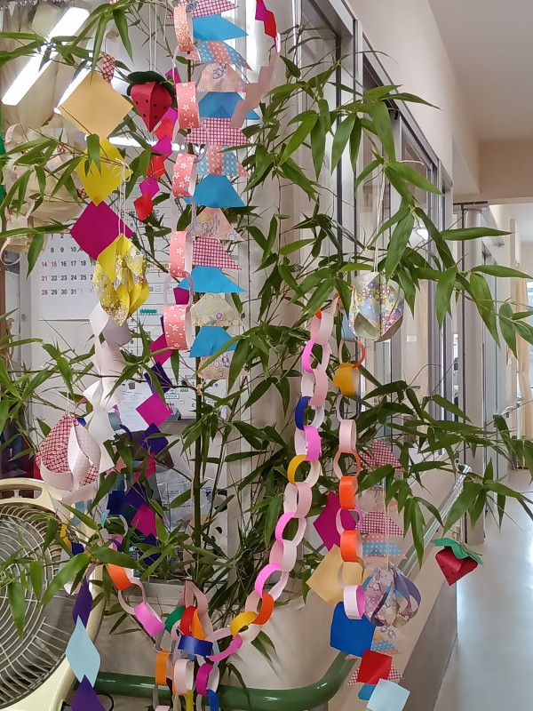 七夕で短冊にお願いごとを書いて頂きました。