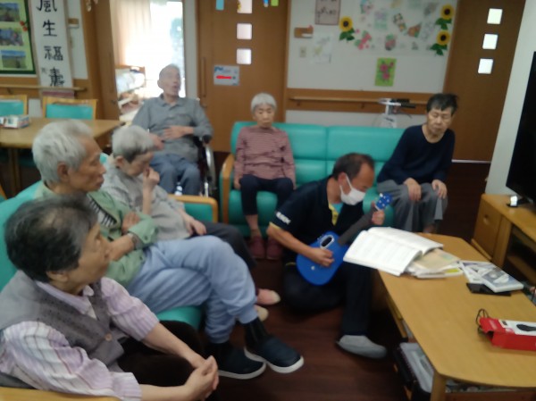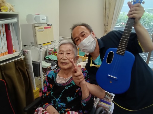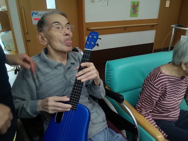 皆様の歌声に誘われて、ホーム長もウクレレ持ってきました???? まだまだ宴は続きます☆