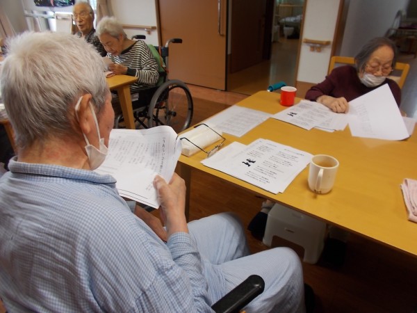 お昼ご飯の前に、「皆さん!一曲どうですか!歌いませんか!」と一人のご利用者様が声をかけられました。(^^♪