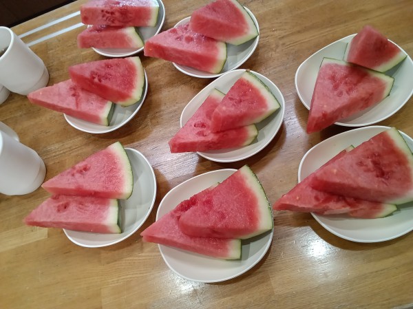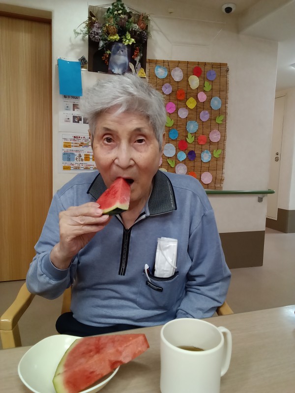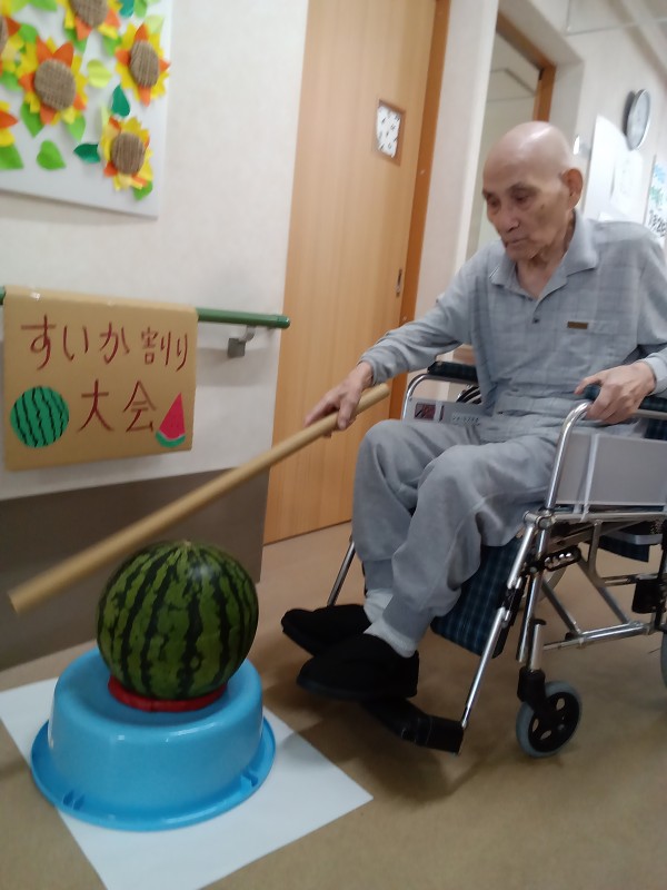1,2,3F合同で盛大にふれあい喫茶⇒スイカ割りレクリェーションを行えて