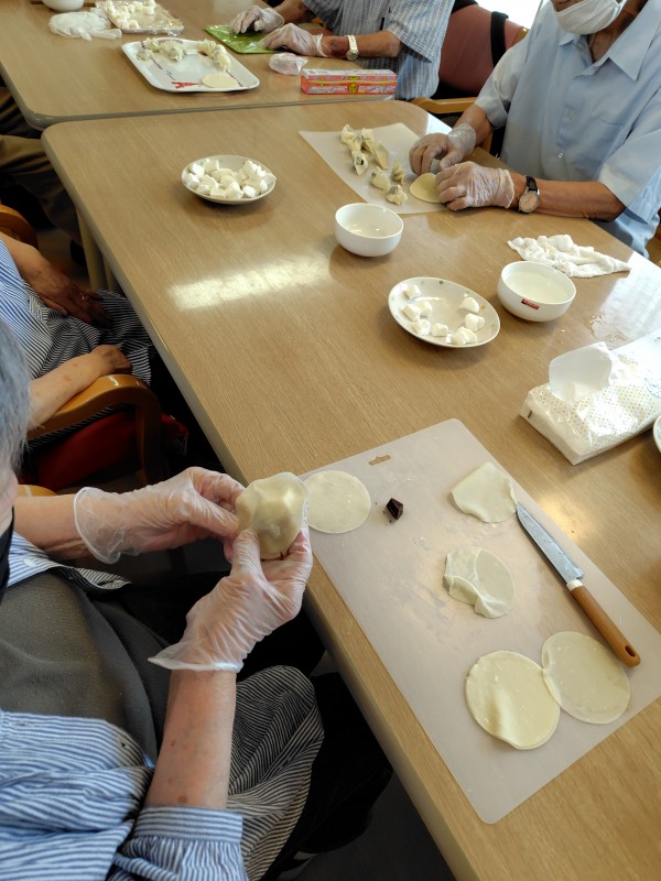 本格的な餃子の形で包む方もいれば、2枚の餃子の皮で包む方等