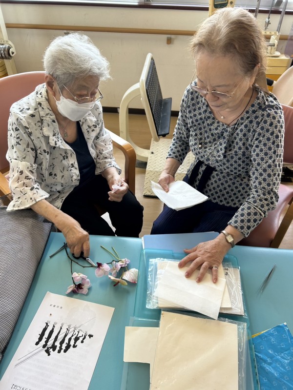 テーブルから離れてご利用者2人で何か作られています。
