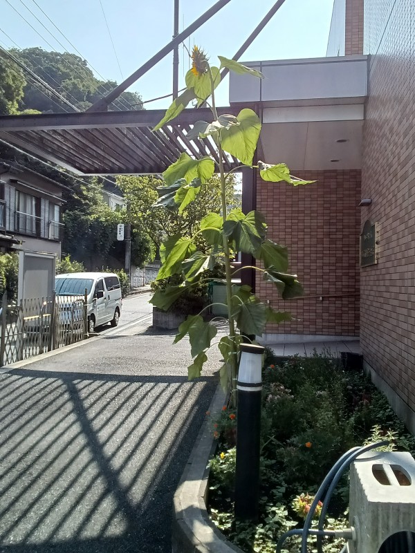 ホームの花壇の大きな大きなヒマワリが咲きました!