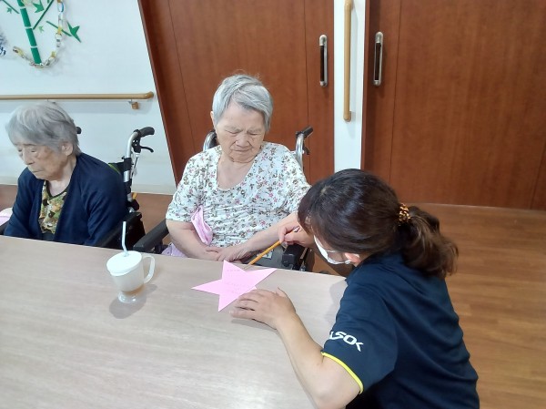 今回は入居者様とスタッフによる「七夕飾り」をご披露します(*^^*)