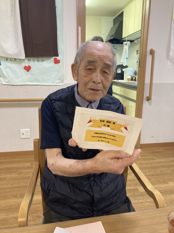 本日は7月度の誕生日会の様子です。91歳になられました。