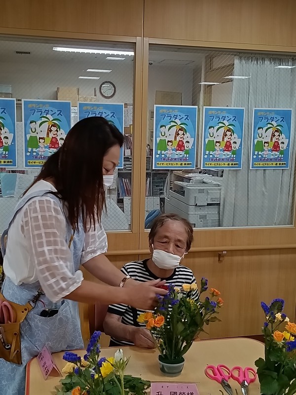 暑い中、クーラーの効いた避暑地(笑)遊・東浦和では毎月恒例のフラワーアレンジメント教室がありました。
