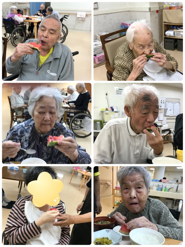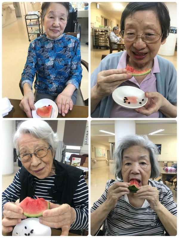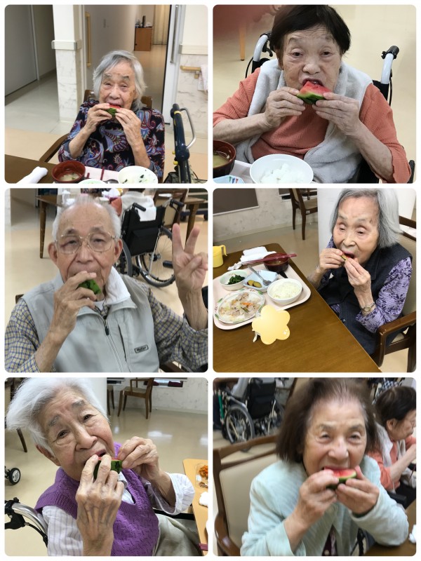 さて、先日スイカが沢山取れたので、夕食と一緒にみなさまにお届けしましたー!!