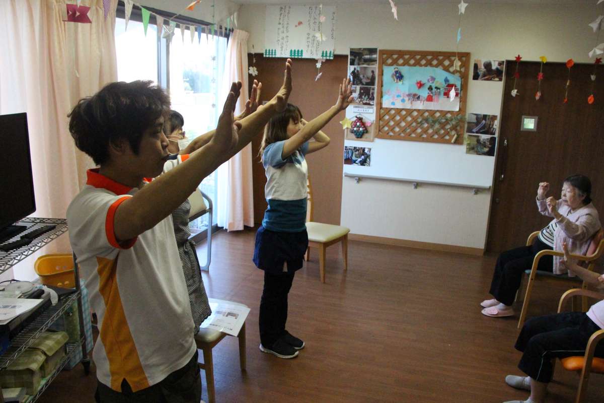 今回、ご利用者様と職員みんなで一緒に声を出し、頭も使いながら体を動かしたりしましたが、