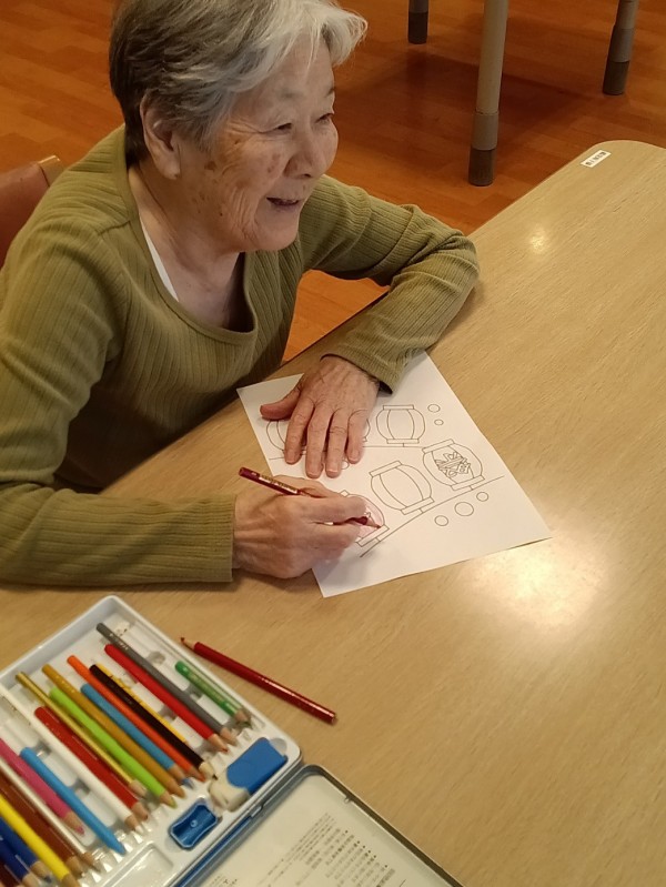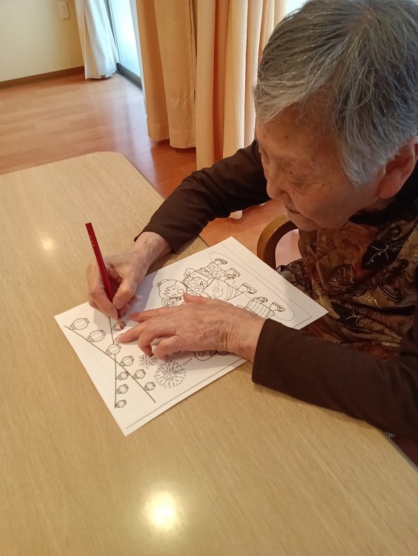 お昼ご飯を食べてゆっくりと過ごす時間にご利用者様と塗り絵をしました♪