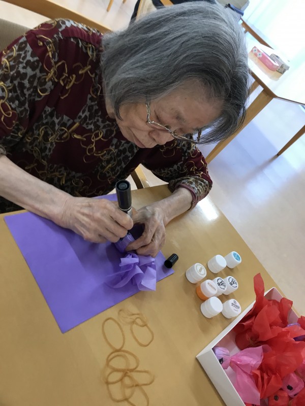 夏祭りに向けて職員とご利用者様とで協力しながら様々なものを作っております。
