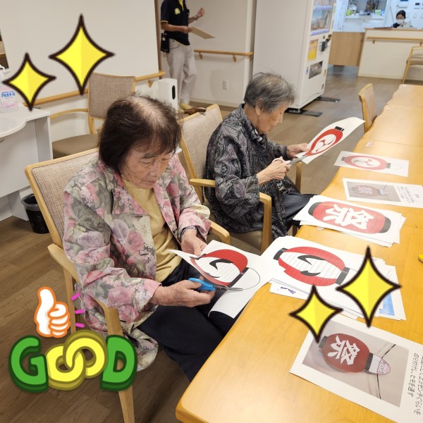 今月開催される「いきいき盆踊り」の飾り付けを手伝っていただいてます♪