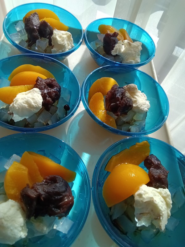 本日のおやつの時間のメニューは「あんみつ」です!