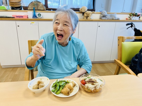 みんなで、そうめんを食べましょう♪ということで、そうめんレクの各階の様子をご覧ください(^^)/