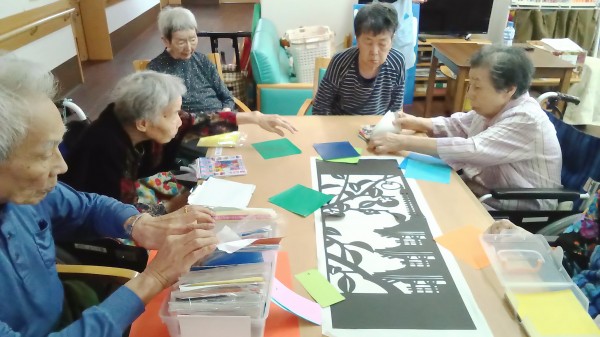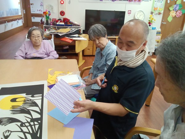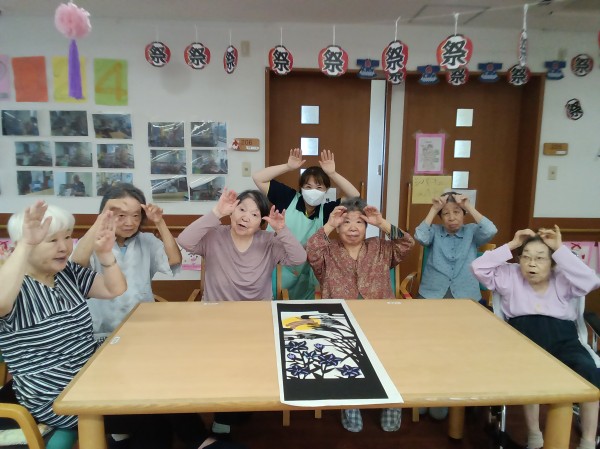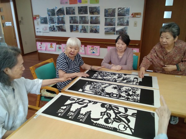 みなさんでワイワイ楽しみながら作った影絵は当施設の玄関を入ったところに飾ってあります。