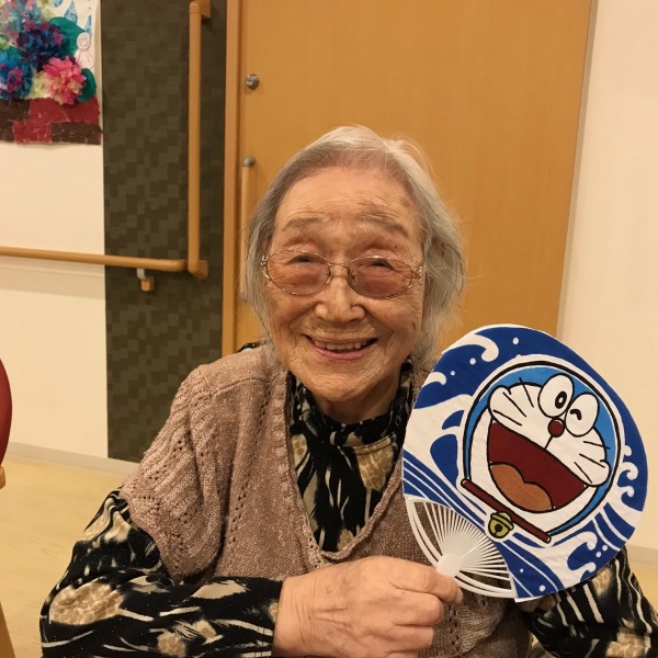 本日は、うちわ作りを体験していただきました。お好きな絵柄を選んで、はさみで切り