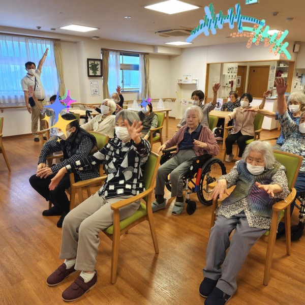 体操をリモートでつなぎ、他の施設の方々と一緒に体操を行います。