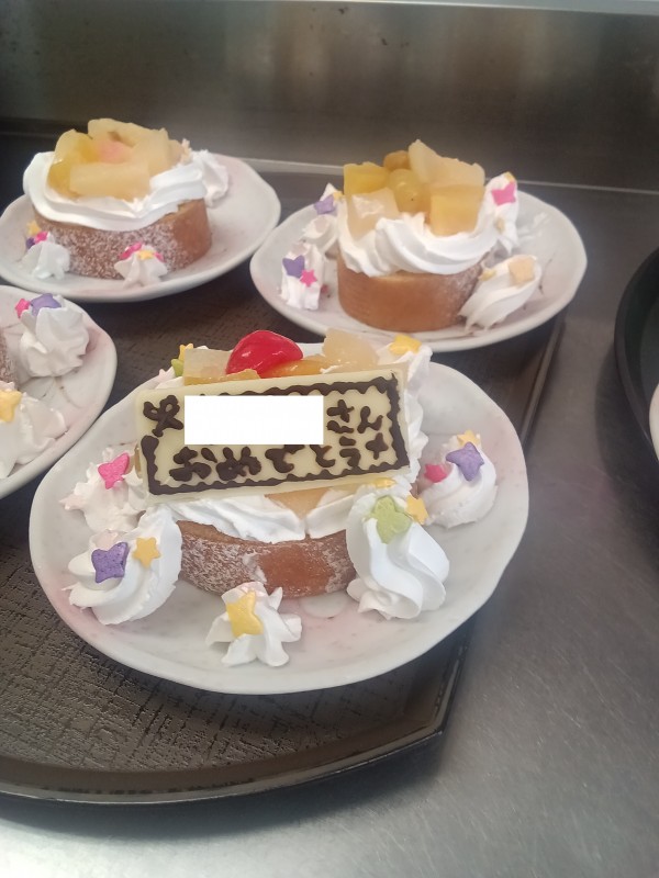 おやつにはロールケーキを使用したケーキをご用意いたしました!皆さん美味しそうに頂かれていました!