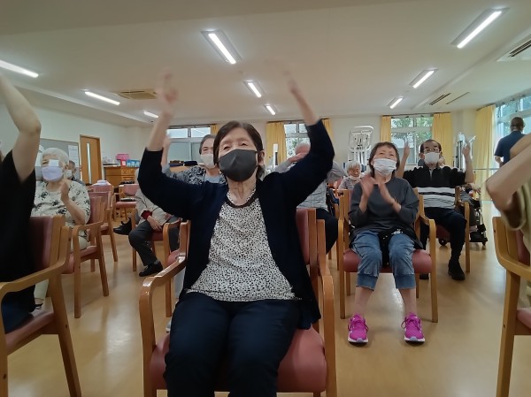 今日は、22日(木)の「いきいき盆踊り」(リモートでの参加)の様子です。