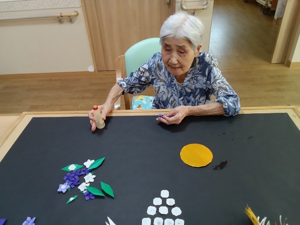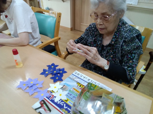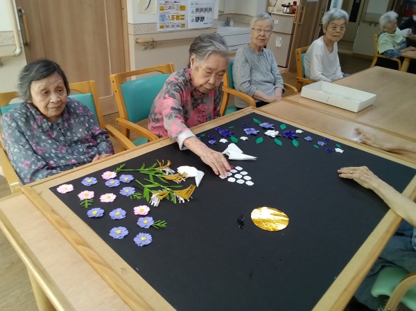 壁飾り作りではご利用者様にいろいろな飾りを貼っていただきました。