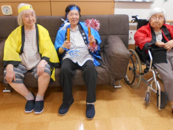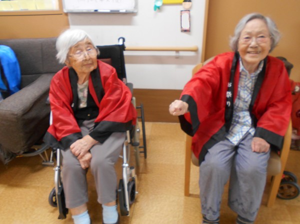 車椅子のご利用者様も、お面??を被ったスタッフと一緒に参加しました~♪♪