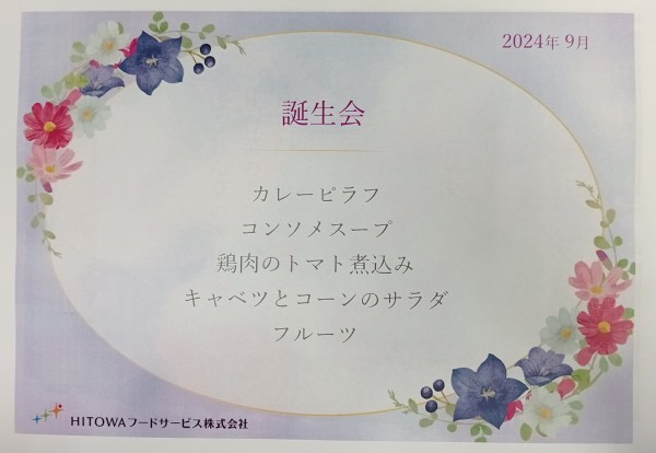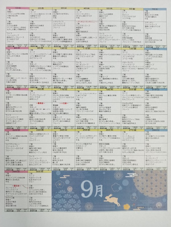 9月の献立表が出来上がりました☆彡