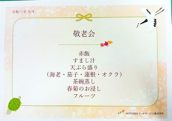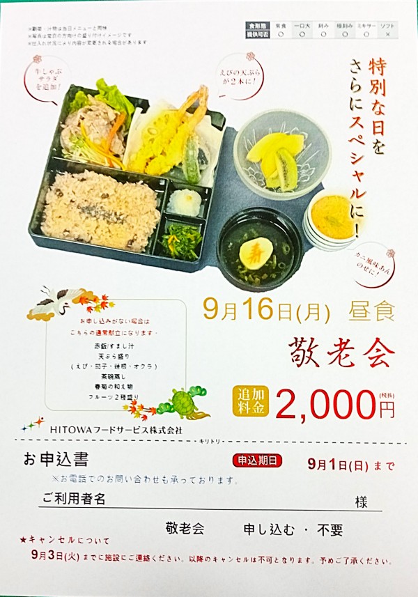 『敬老会』の特別メニューがあります♪