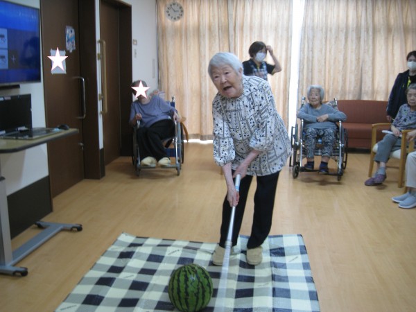 グループホームみんなの家・蕨2では、ほぼ毎年スイカ割りを行っています。