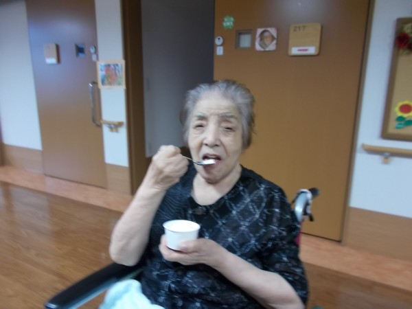 皆様、ニコニコしながらおやつを召し上がっています。