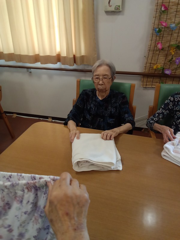 午後は洗濯物たたみ等の家事をお願いしたり、DVDなどで体操など身体を動かしていただいています