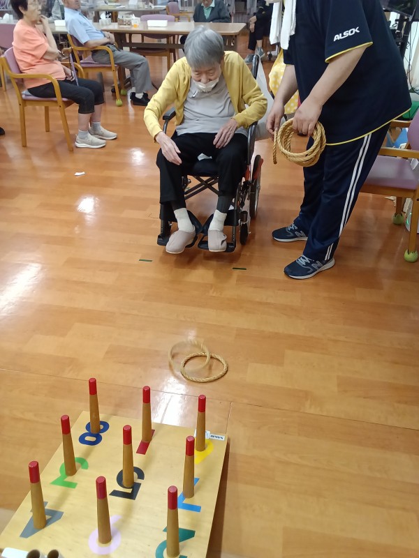 今日のレクは、輪投げ!!