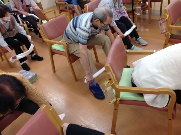 早速タオル体操を始めていますねー。元気いっぱい!