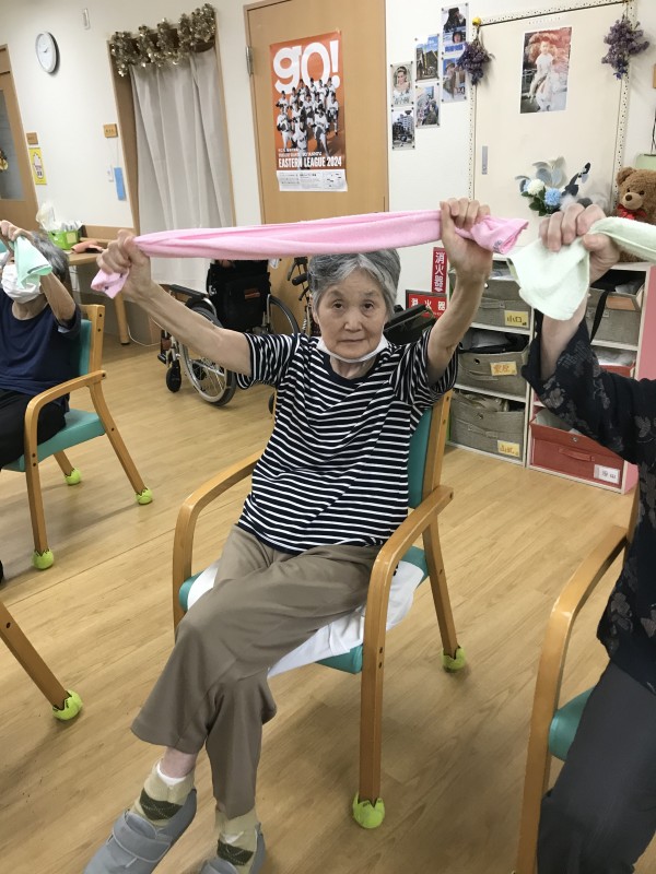 岡庭先生のタオル体操に参加される皆さんの様子です。