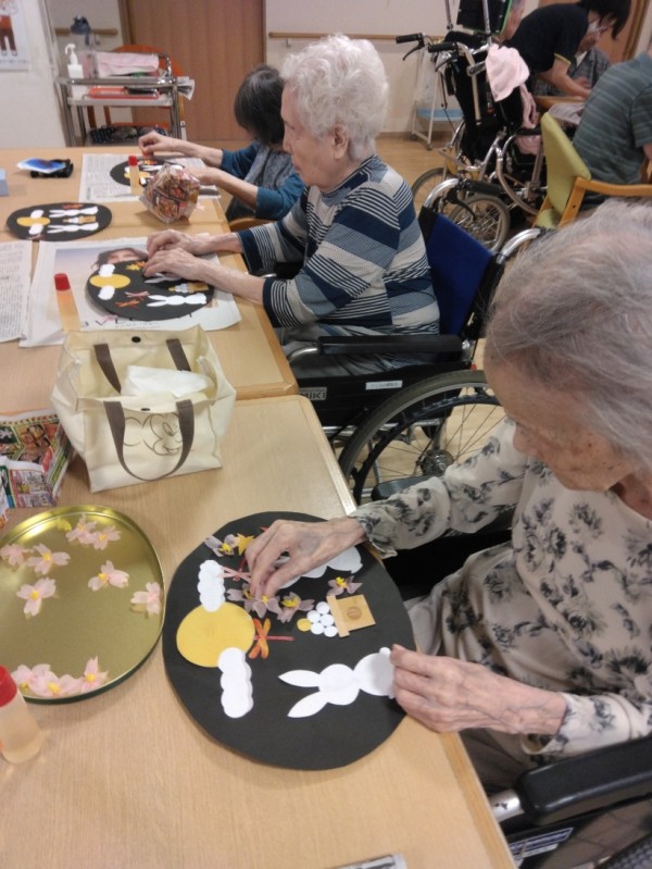 昨日のレクリエーション活動では「お月見飾り作り」1コマをご紹介致します。