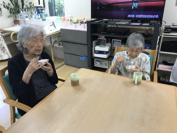 ゼリーやカルピスなど涼しく感じるおやつを利用者様にご提供しましたので、