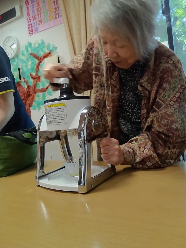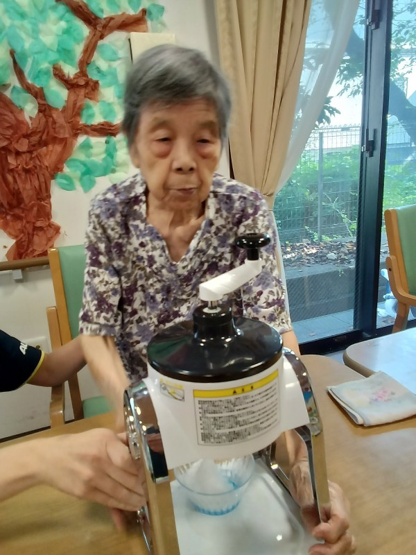 かき氷を入居者様ご自身で作っていただきました(とても素敵ですよね)
