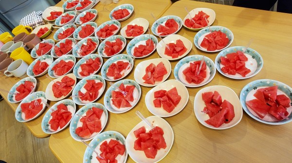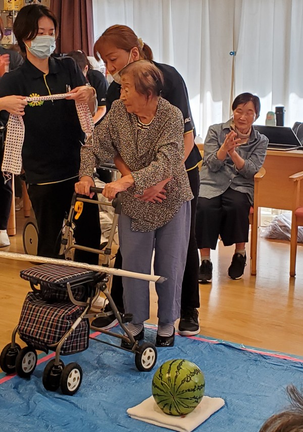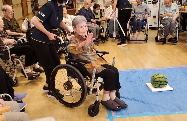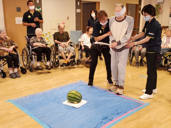 そんななか、アミカの郷亀有では毎年恒例の【すいか割り】が行われました♪