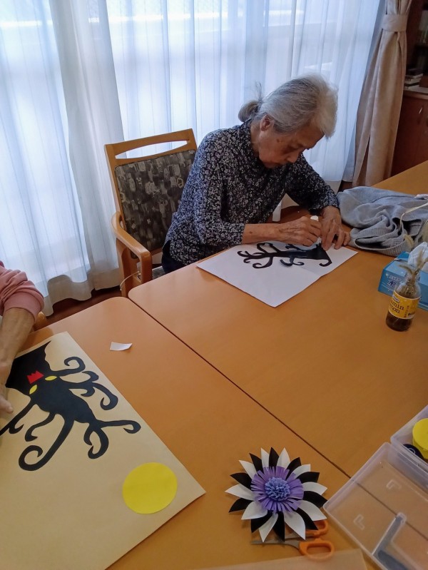 画用紙に一生懸命、考えながら貼ってました(*'ω'*)