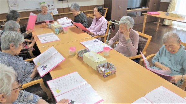 いつまでも暑い日が続きます。体操も良いですが、今日は皆で歌って発散します。