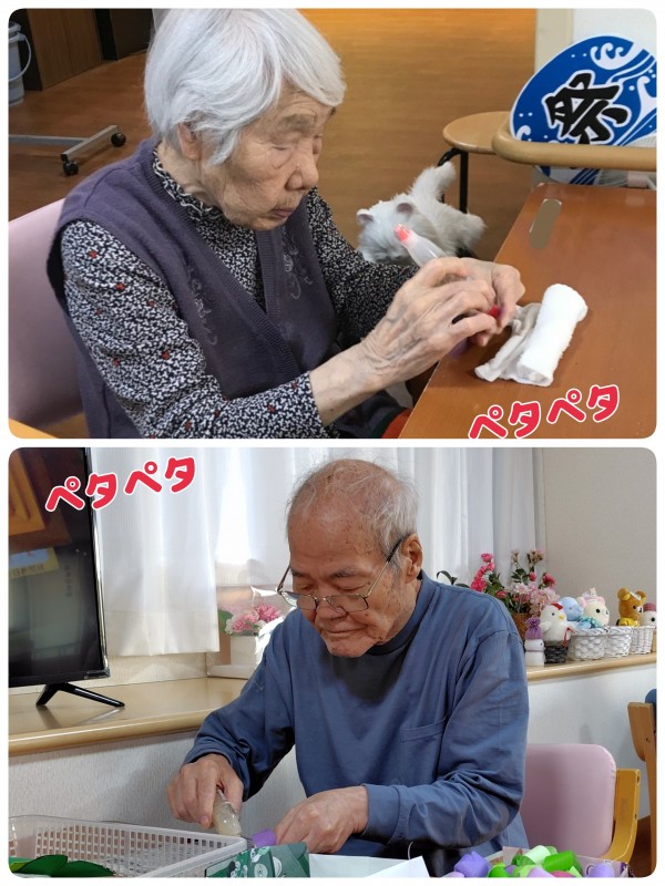 ペタペタと、のりをつけます…