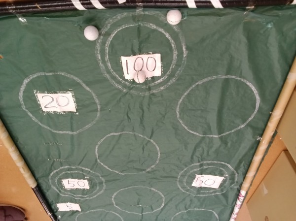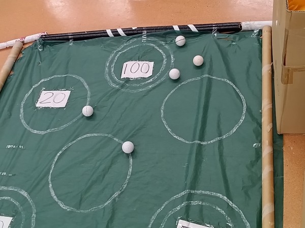 会場ではすでにパターの最中ですね。ゴルフボールを打って〇の中にピタッと入れれば点数になります