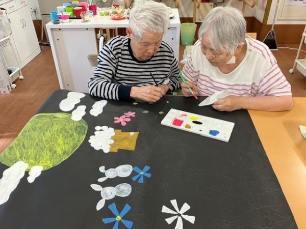 施設でも各フロアーでお月見の壁画を作成いたしましたので、そのご様子をブログ担当のママがご紹介いたします♡