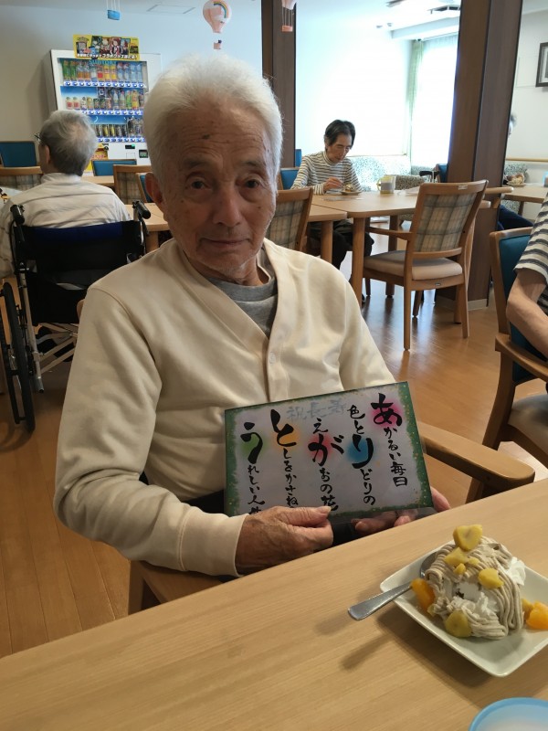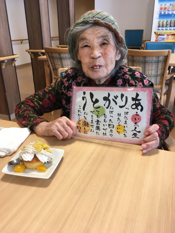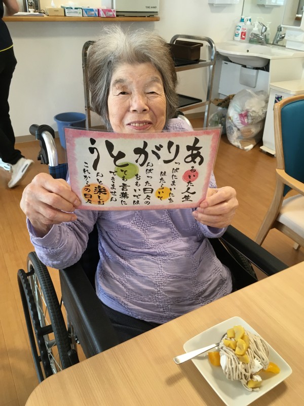 米寿(88歳)になりました。ホーム長より花束のプレゼントです。