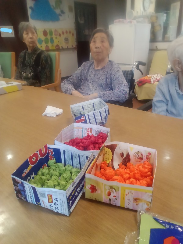 飾り作りをされている様子ではございますが、皆様とても真剣な顔で行われていますね